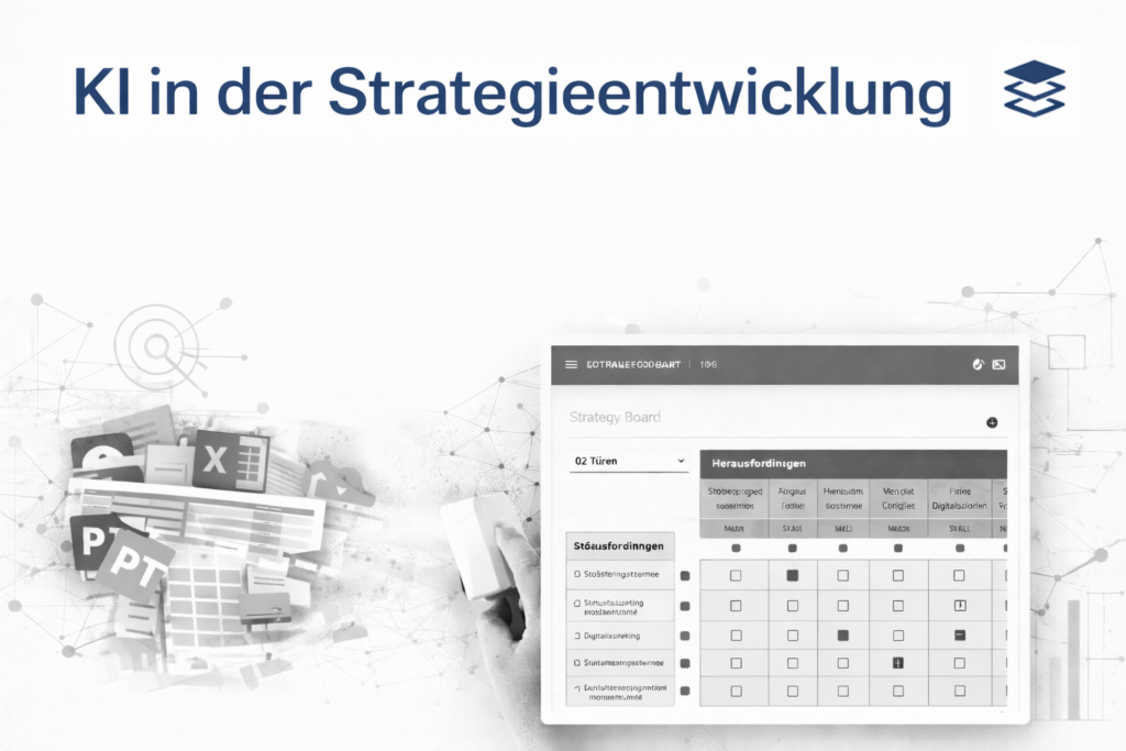 In den meisten KMU sieht die Realität so aus. Die letzte SWOT liegt irgendwo in einer PowerPoint vom letzten Workshop. Die strategischen Fragen wurden damals formuliert, aber nie systematisch weiterverfolgt. Die Optionen, die das Führungsteam entwickelt hat, existieren in drei verschiedenen Versionen. Und die Massnahmen, die beschlossen wurden, sind über Excel-Listen, E-Mails und persönliche Notizen verteilt.